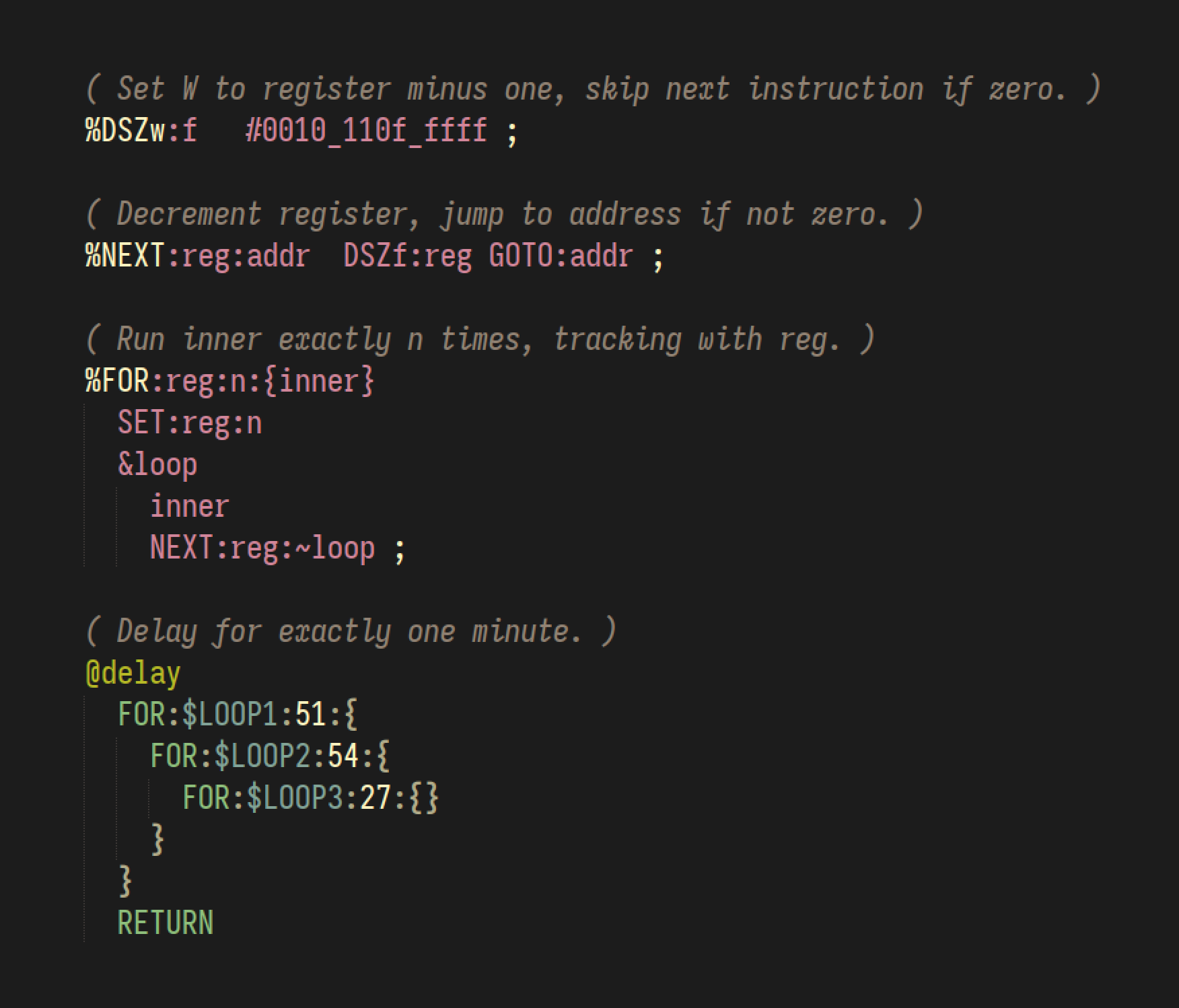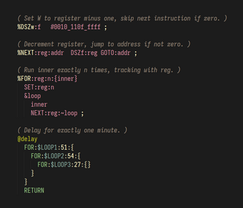 As a meta-assembler, Torque doesn't hard-code behaviours for specific processor architectures like you might expect from a normal assembler: instead, you implement these behaviours yourself as macros, using the datasheet for the target processor as a guide.